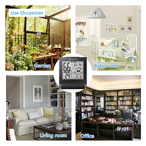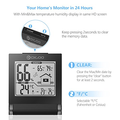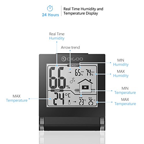 DIGOO TH1117 Indoor Thermometer, Digital Indoor Hygrometer Temperature Monitor, Simple Humidity Level Icon, Really Time Display with 270°Collapsible cover
