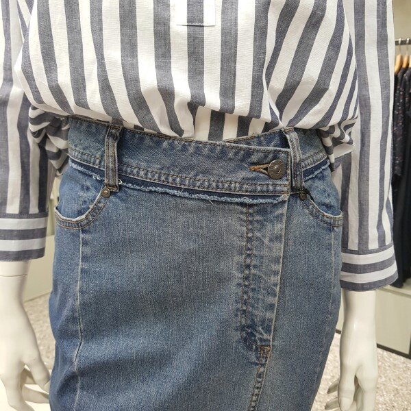 옆지퍼와 언발 밑단 옆트임이 포인트~ 55사이즈 기준 총장 56cm입니다.