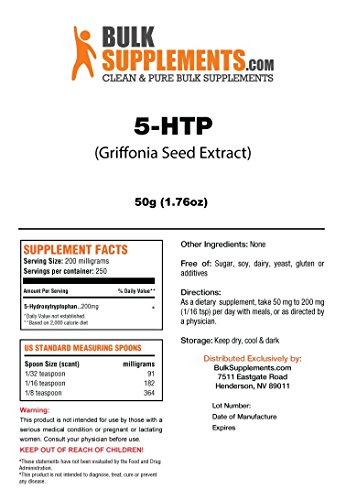 BulkSupplements Pure 5-HTP (Griffonia Seed Extract) Powder (50 grams)