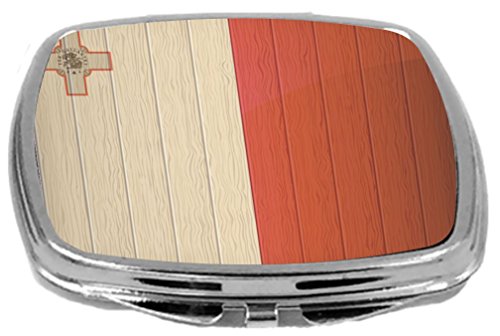 Rikki Knight Compact Mirror on Distressed Wood Design, Malta Flag, 3 Ounce