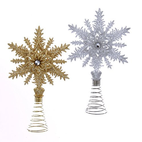 Kurt Adler Glitter Snowflake W/clear Gem Stone Treetop 2/asstd Colors: Gold & Silver