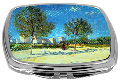 Rikki Knight Compact Mirror, Van Gogh Art Pine Trees Setting Sun