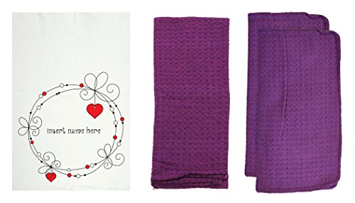 R&R Textile Mills 8 Piece Personalized Circle Design with Heart Kitchen Towel Set, Violet
