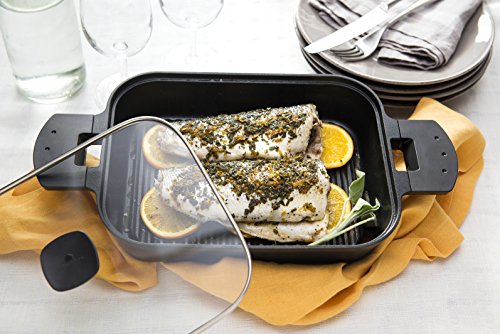 • Steam + grill steams and grills simultaneously by adding water to the ridge surrounding the grill resulting in delicious, juicy food