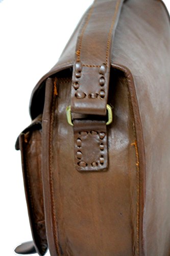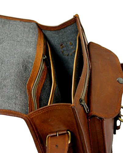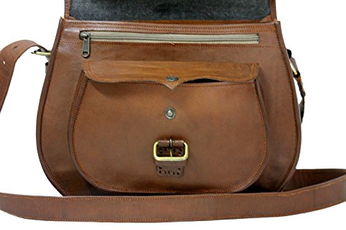 Genuine Leather Gypsy Bag RusticTown Handcrafted by Indian artisans. 3 Internal compartments One can carry their cosmetics, specs/shades, small wallet, etc 2 Zippers, one at the back 1 Adjustable Strap Use of Canvas Lining Eco Friendly Bag Naturally Tanned Size 13"(W)x10"(H)x4"(D) -Pls be aware that pure leather by its nature has some scars (due to markings/cuts on goat skin) which reconfirms that its 100% genuine and also makes every bag one of a kind and adds character to your prized possession. -Also, each bag has distinctive color tone, which may deviate a little from given pictures. -Pls also note that this brand new bag may also have a distinctive leather smell. Most of our customers tend to like this earthly smell, some don't. In any case it does fade away within 4-6 weeks of regular use.