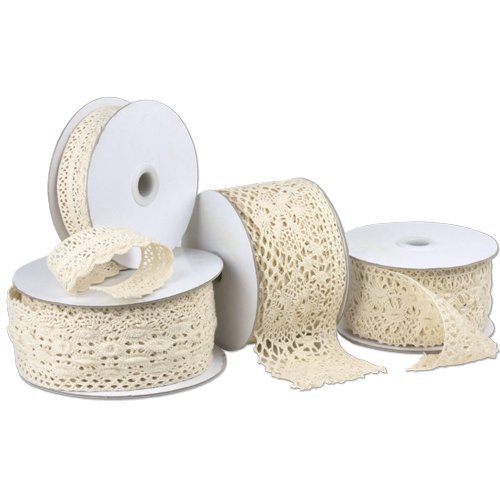 1/2" Crochet Lace Cotton Ribbon Trim Pattern Gift Wrap Decor Ideas 10 Yard Roll - Ivory