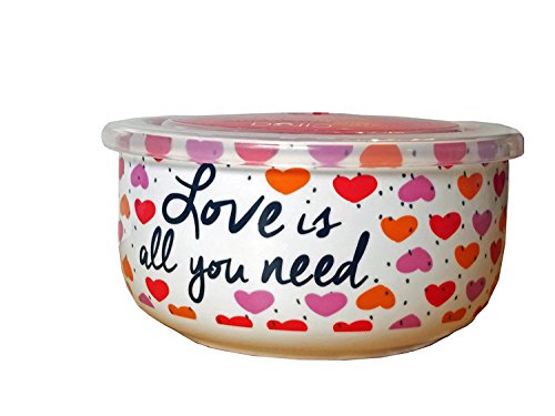 Ciroa Microwaveme Fine Porcelain Microwave Bowl with Silicone Seal Lid 6.5 Inch (love is all you need)
