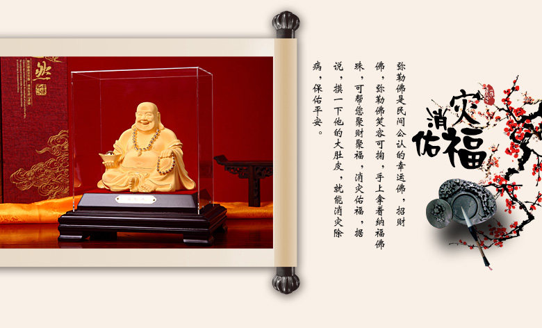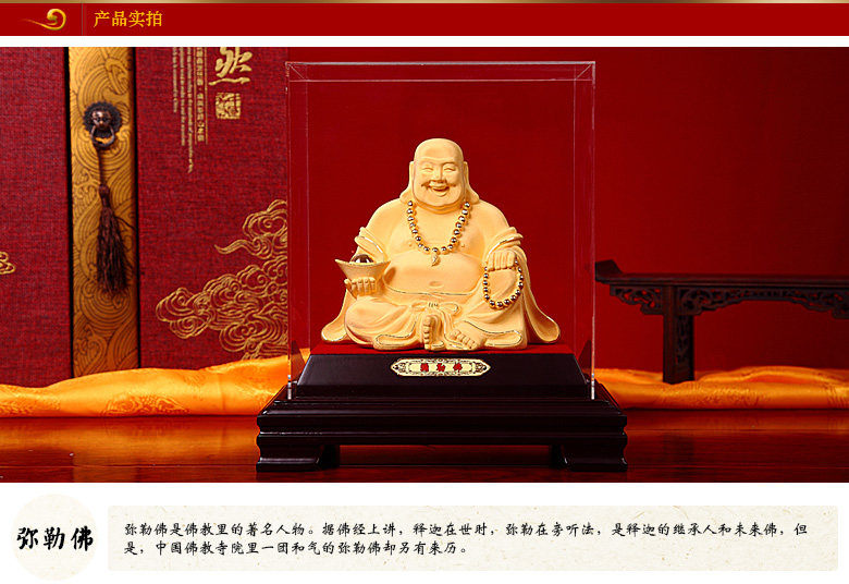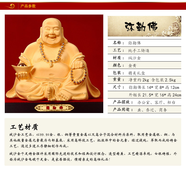礼之源绒沙金佛像摆件招财弥勒佛家居装饰品摆设生日乔迁贺寿礼品
