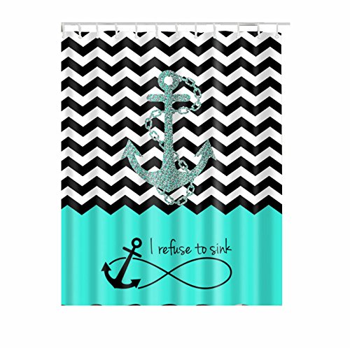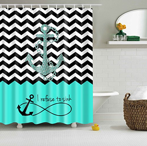 WINGONEER Home Bathroom Waterproof Mildew Polyester 70 x 70 Inch Shower Curtain With Hooks - Blue anchor