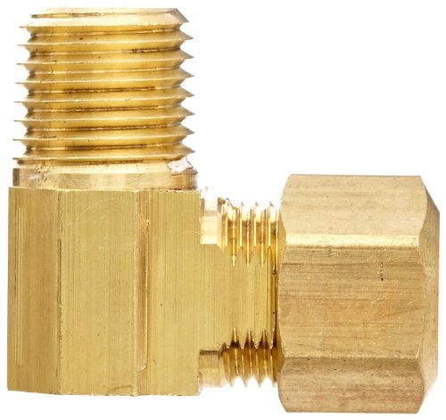 Anderson Metals 50069 Brass Compression Tube Fitting, 90 Degree Elbow, 3/8" Tube OD x 1/4" NPT Male Pipe