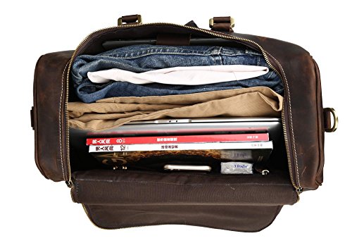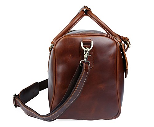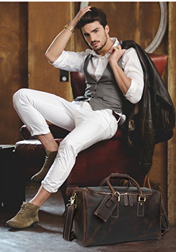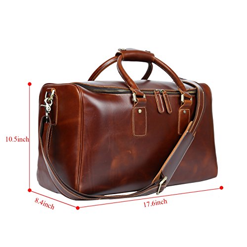 -. Binding : Apparel -. Brand : BAIGIO -. Department : mens -. Feature : Dimensions: 17.6"L x 8.4"W x 10.5"H. Genuine leather duffel bag for overnight or 2-3 days business trip / Top 'U' shape zip opening, joining hook-and-loop top handles; Removable and adjustable shoulder strap with thickened pad / Come with matched lage tag. Fill in the name tag or insert your business card. Perfect gift for frequent travelers / Inside laptop compartment fit for 14" laptop, smart contrast stitching and canvas lining / 5 Brass stand feet on the bottom for protection. Brass hardware. Quality zipper of fluent and smooth. -. ProductGroup : Shoes -. ProductTypeName : SHOES -. Title : Baigio Men's Brown Genuine Leather Weekend Travel Duffel Overnight Bag Gym Bags