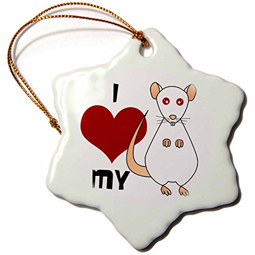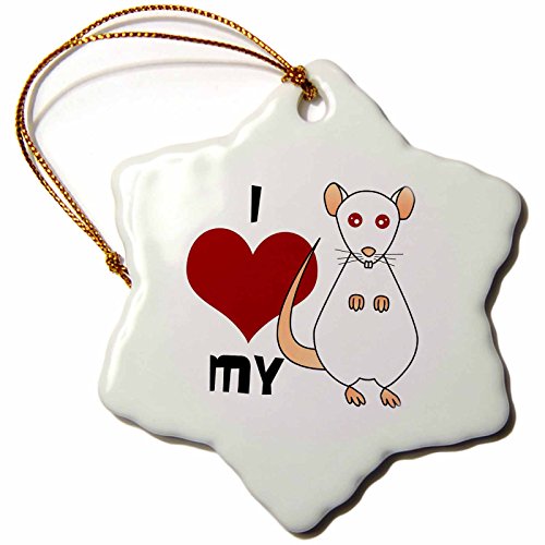 3dRose Love My Rat White Snowflake Porcelain Ornament, 3-Inch