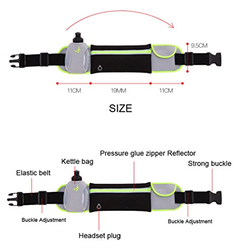 * Lightweight, Durable and very Comfortable * Reflective stripe increase safety level for cycling, running or walking in the dark! * Large Capacity Perfect phone holder better than armbands, zipper in front design can help you to reach the phone easier during running. * A heavy duty buckle and Adjustable Belt. Easy eo use and fits great for both men and women, high quality elastic expandable strap give customers a great wearing experience.