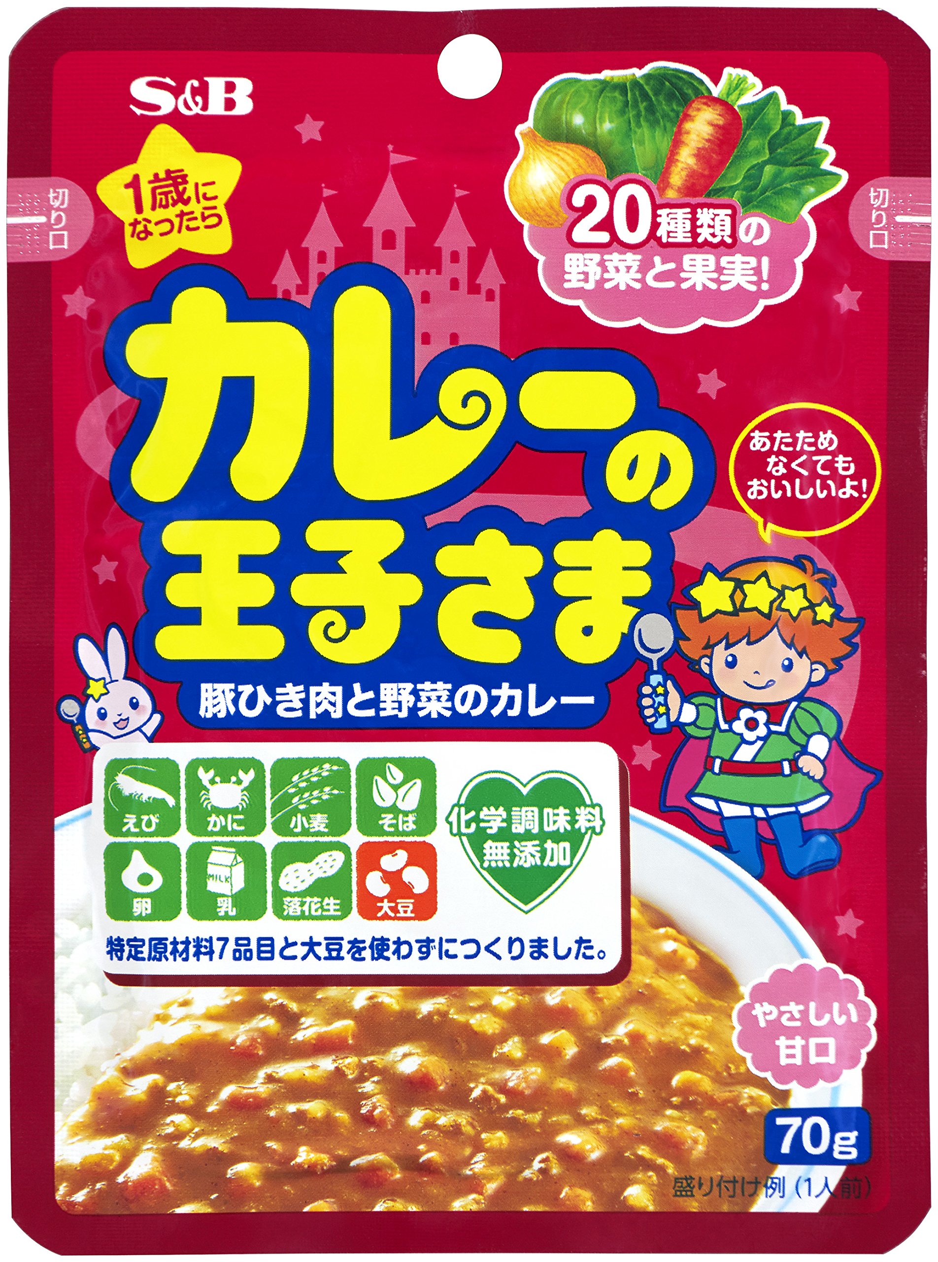 Curry's Prince can take 19 different kinds of vegetables and fruits, as there are 4 to 9 kinds of retort curry vegetables for other children's infants.