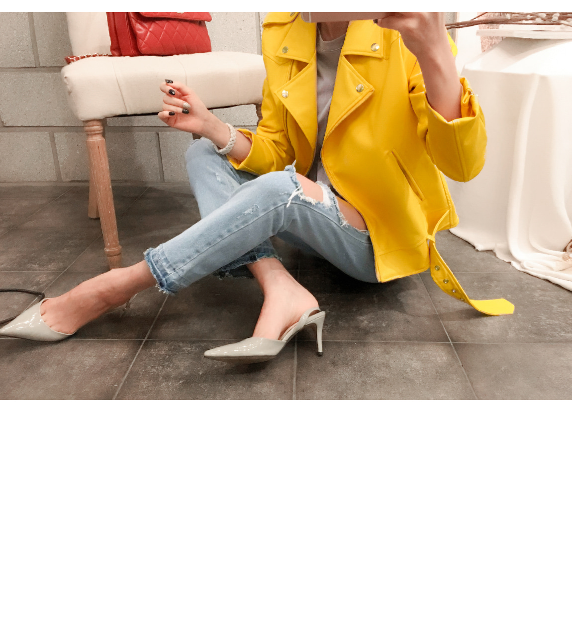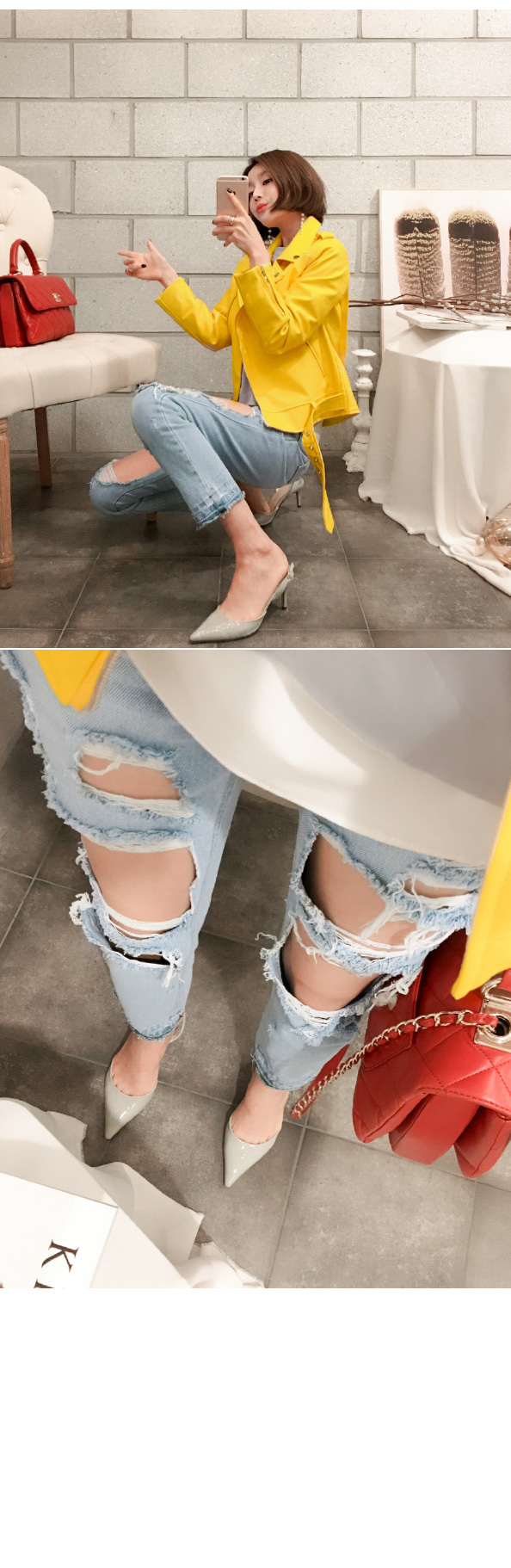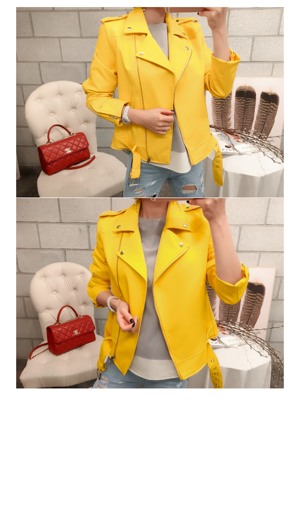 밑단의 벨트 디테일로 유니크한 포인트를 주었어요