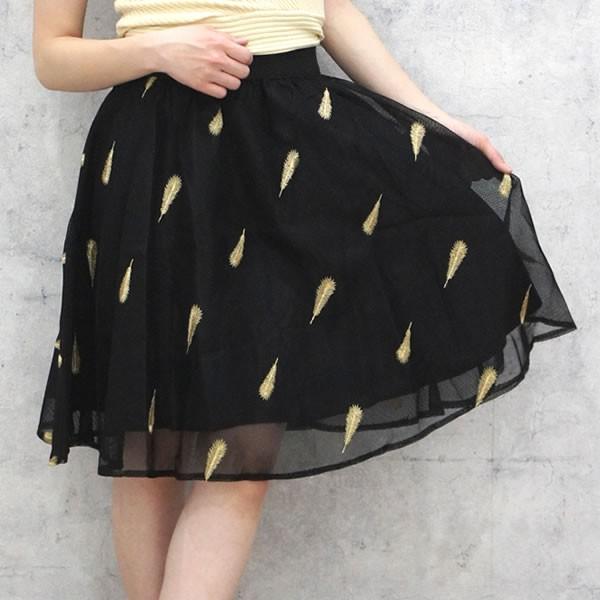| 【即納】フェザー刺繍 ふんわり チュールスカート 膝丈 ボトムス 黒 無地 羽根[ネコポス不可] 【フレアスカート レディース 女性 黒 black ブラック 膝丈 スカート チュール フレア 羽根 刺繍 ししゅう ステージ衣装 発表会 コーラス 社交ダンス】 | |