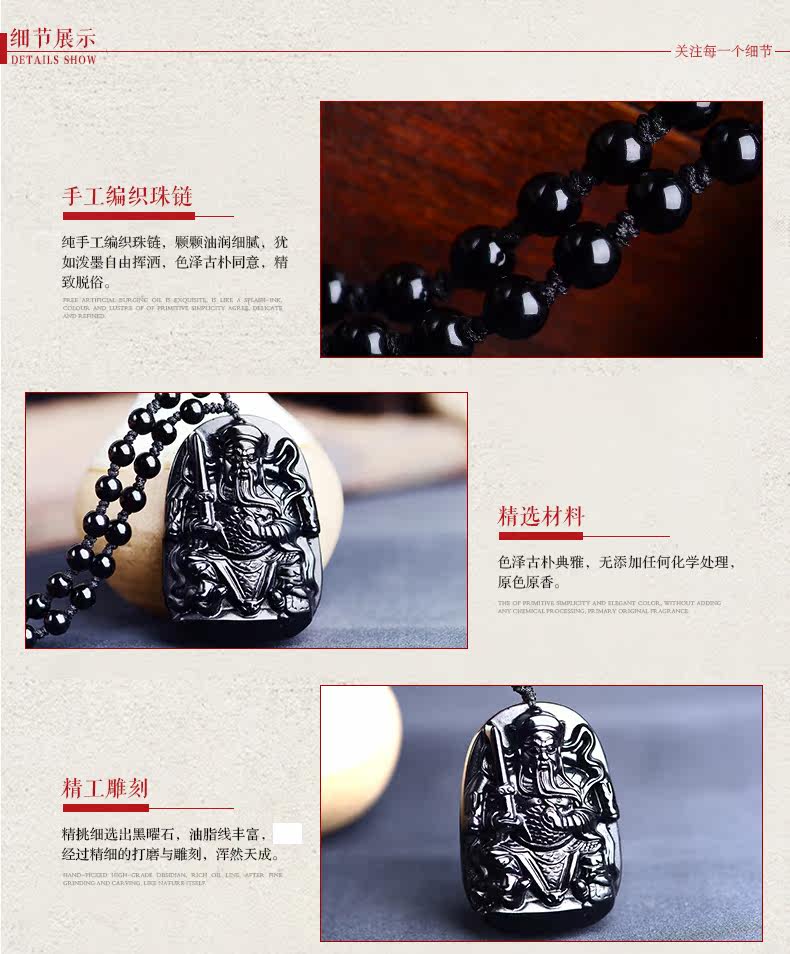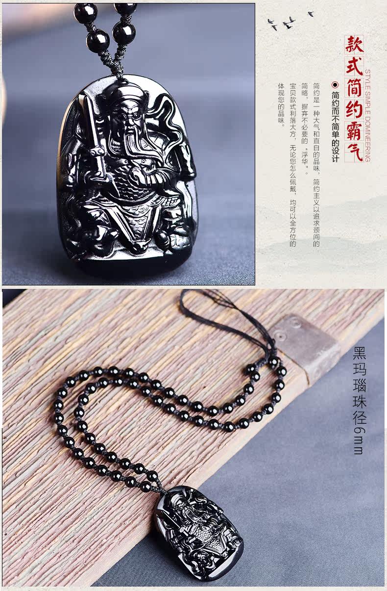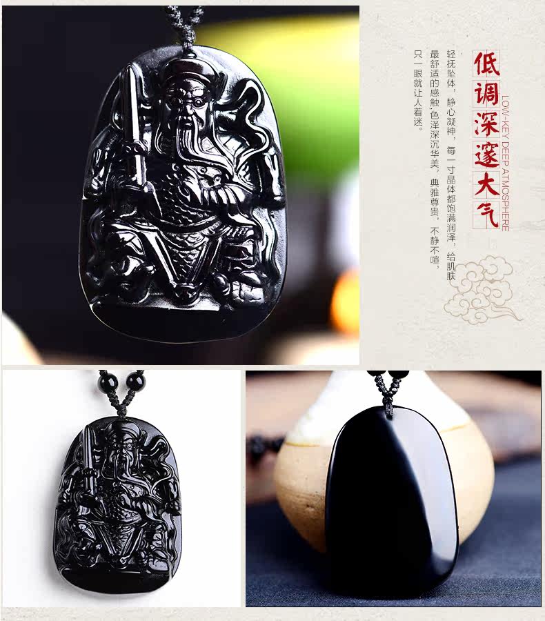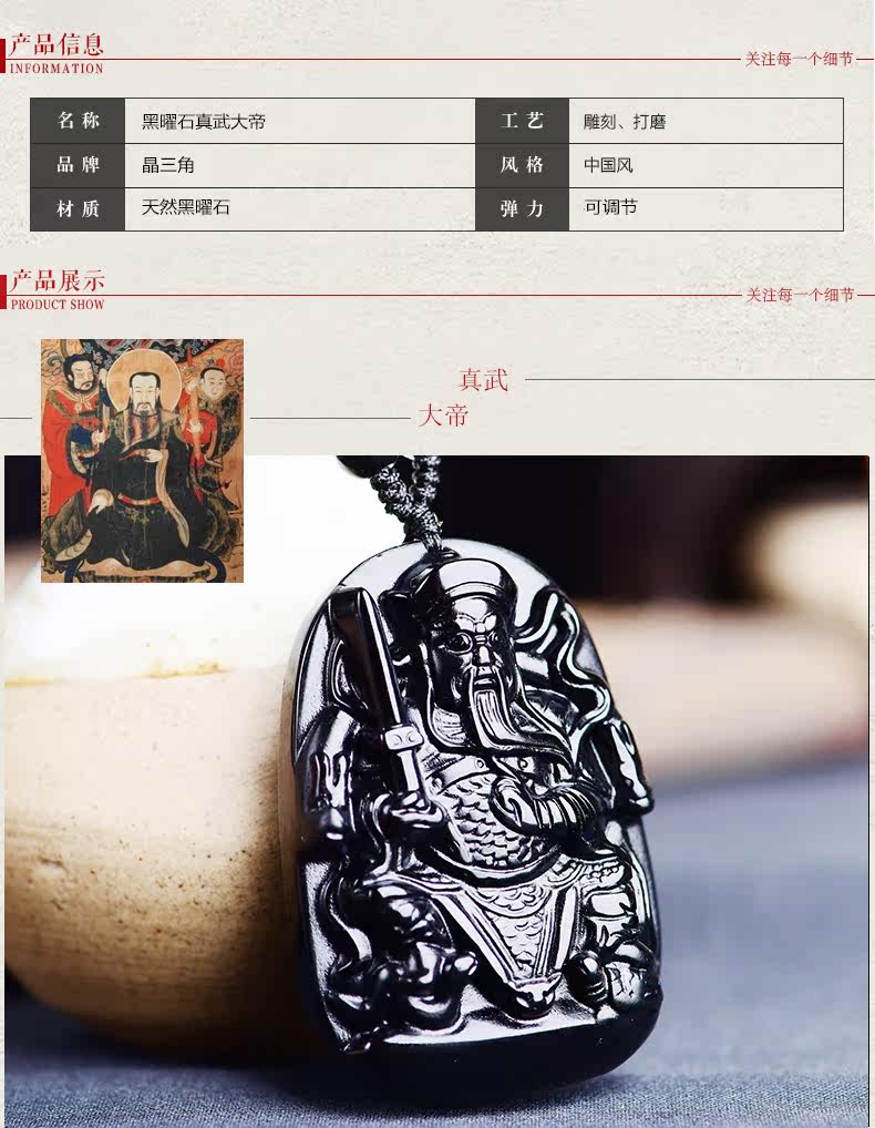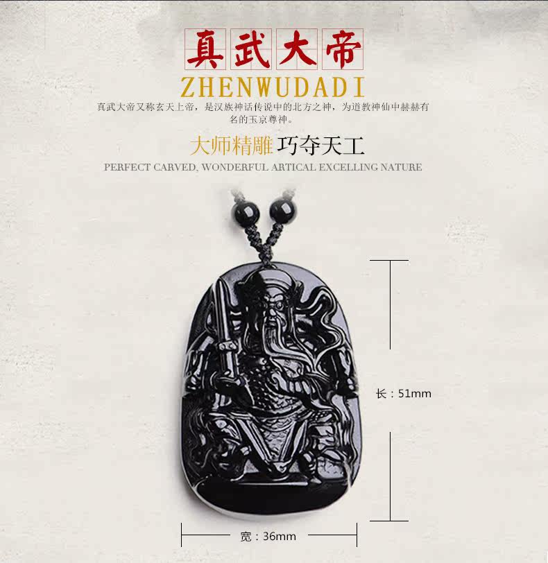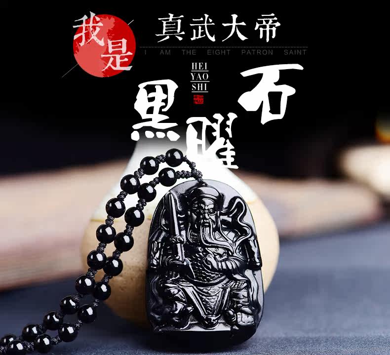 开光天然黑曜石真武大帝吊坠 玄天上帝挂件男女项链生肖吉祥物