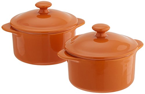 Mario Batali by Dansk Stoneware 10-Ounce Individual Round Casserole Set of 2, Persimmon