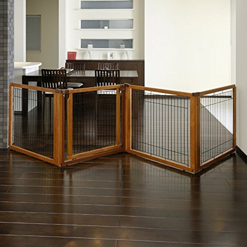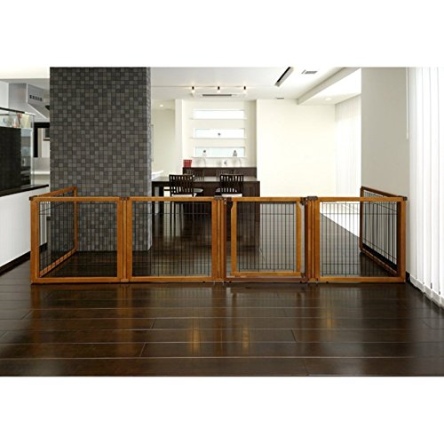 - Feature : Size and configuration options available / Panels are a durable wooden frame with wire interior / Rich antique bronze wire and autumn frame / 3 products in 1 / Converts from freestanding pet gate to room divider to pet pen