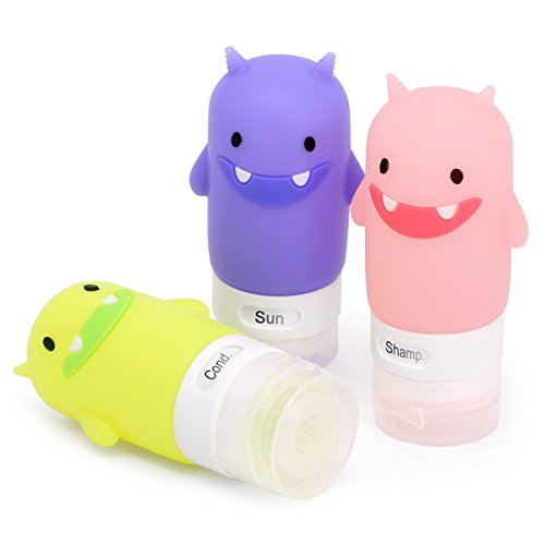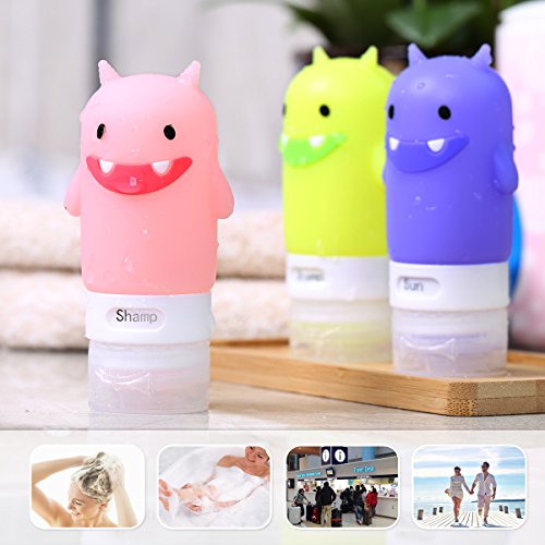 - Cute&Funny Design: Travel Bottles Accessories Set Are Designed In Cute&Funny Monster Shape, And With Wide Mouth Design For Easy Filling. Switchable Label, Each Travel Bottles Prime Has 5 Silver Labels (Shamp./ Soap/ Lotion/ Cond./ Sun) And A Blank Label For DIY, The Label Will Remind You What'S In The Bottle.