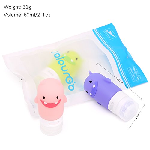 Valourgo Silicone Travel Bottles Set TSA Airline Approved 2oz Leak Proof Cute&Funny Travel Bottles Accessories Set Of 3 Travel Bottles Use For Shampoo And...