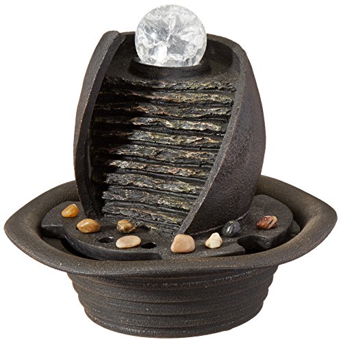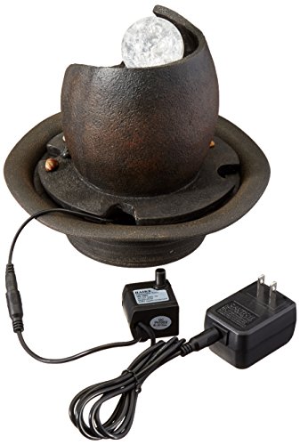 The lovely light on this small tabletop fountain adds to the sensory pleasures of this contemporary tabletop fountain design. Add a little intrigue to any indoor room with this great accent piece. Contemporary indoor LED small tabletop fountain. Hand painted faux stone finish. Cast resin construction. Water pump is included. LED lights are included. One year warranty. For indoor use only. 7" long. 7" wide. 8" high.Feature