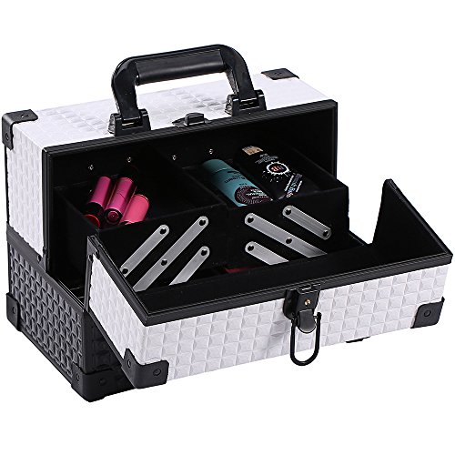 CONVENIENT & PORTABLE—Perfect for professional use, casual use and travel; The vinyl interior lining allows for easy cleaning, while a chrome clasp make case secure and portable; Features Extendable trays for easy access and convenience; This cosmetic case is portable and a lovely way to organize your accessories and make-up
