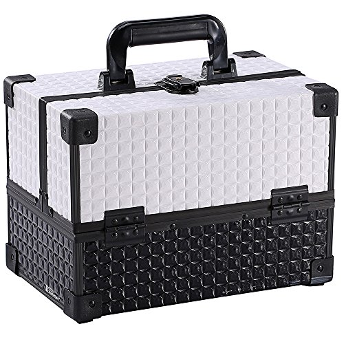 Ikee Design White Cosmetic Travel Carrying Case with Sturdy Black And White Aluminum Frame