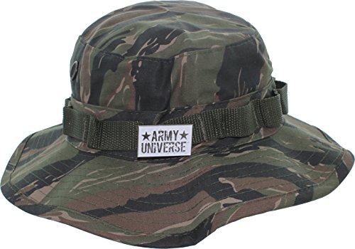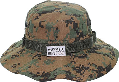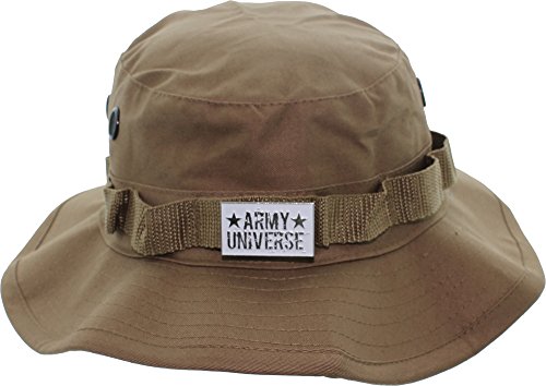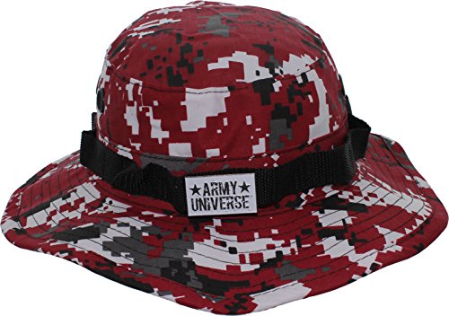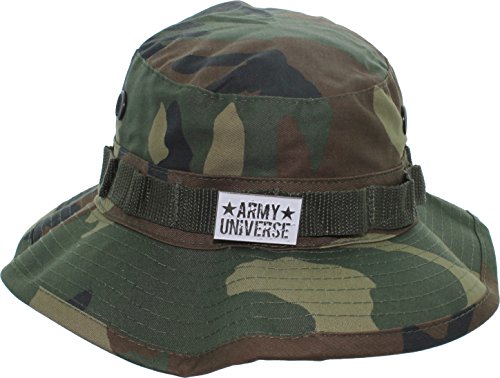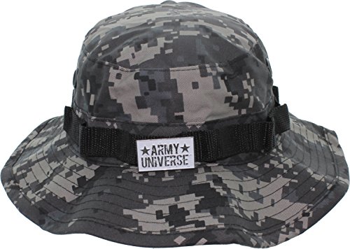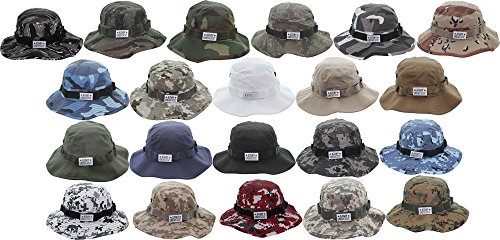 Product Description Our boonie hats, also known as bucket hats, sun hats, fishing hats or jungle hats, are the perfect answer to beating the heat this summer. Great for everything from gardening to golfing! You can even look fly while fly fishing! Our boonie hats are made from a comfortable poly/cotton blend fabric. They are designed with ventilation holes to reduce the build up of heat while the soft, flexable 2.5 inch wide brim blocks out the sun. An adjustable chin strap ensures that you will never loose your boonie while hiking, camping or boating. The tactical band is perfect for holding your spare lures, foliage for extra camouflage or your free new signature Army Universe pin. The soft material can be rolled up for the to provide handy, collapsible, packable, portable shade anywhere you go. We offer a wide range of colors and patterns to match your style. Every order comes with a free Signature Army Universe pin. Choose from ACU Digital Camo Boonie Hat, Black Boonie Hat, City Camo Boonie Hat, City Digital Camo Boonie Hat, Coyote Brown Boonie Hat, Desert Camo Boonie Hat, Desert Digital Camo Boonie Hat, Digital Woodland Camo Boonie Hat, Khaki Boonie Hat, Navy Blue Boonie Hat, Olive Drab Boonie Hat, Red Digital Camo Boonie Hat, Sky Blue Camo Boonie Hat, Sky Blue Digital Camo Boonie Hat, Smokey Branch Camo Boonie Hat, Subdued Urban Digital Camo Boonie Hat, Tiger Stripe Camo Boonie Hat, Total Terrain Camo Boonie Hat, White Boonie Hat, Woodland Camo Boonie Hat, and Urban Tiger Stripe Camo Boonie Hat. 0