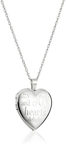 Sterling silver necklace featuring heart-shape locket with "My joy and hearts delight" engraving