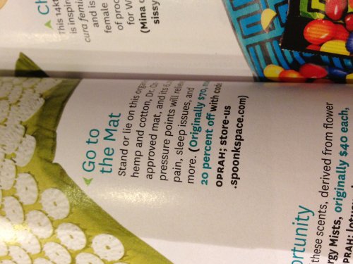 Studio : Sponk Space Publisher : Sponk Space Binding : Sports Product Description Spoonk Acupressure Mat is using principles of acupressure - healing art known as Shiatsu massage - by stimulating increased circulation with 6210 acupressure stimulation points on the problematic areas/ removing blocked energy and as result releiving muscle tenssion or pain while rejuvenatign and rebalancing whole body. 0
