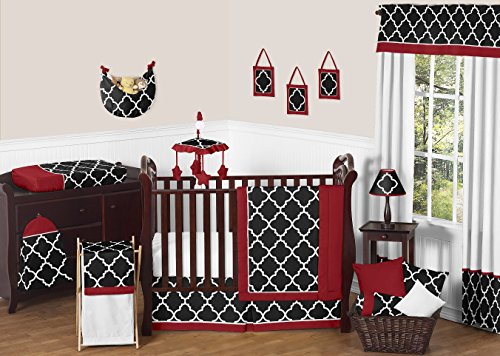 -. Title : Red, Black and White Trellis P.R.Int Gender Neutral Baby Bedding 11 Piece Boy or Girl Crib Set without bumper