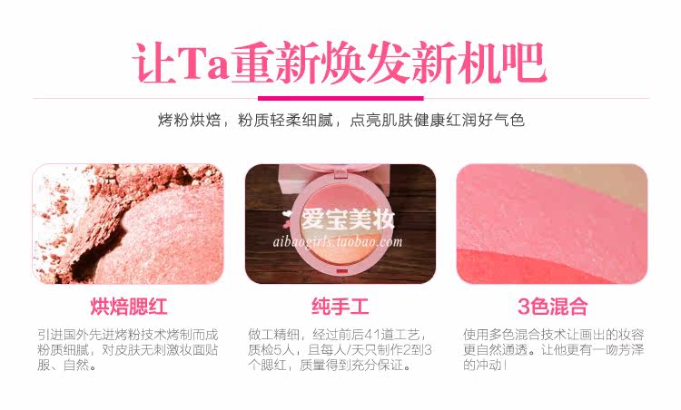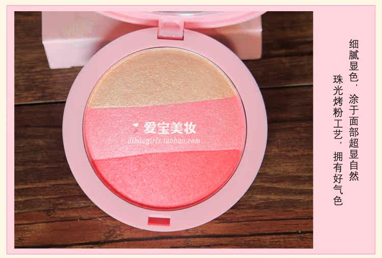 手工41道工艺精制而成,粉质略带珠光,上妆后有提亮效果