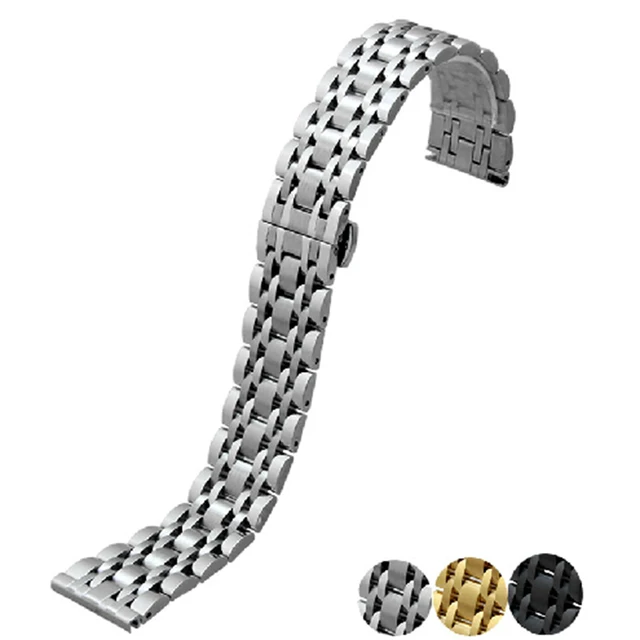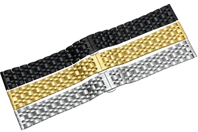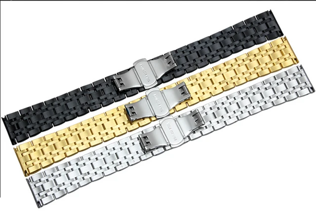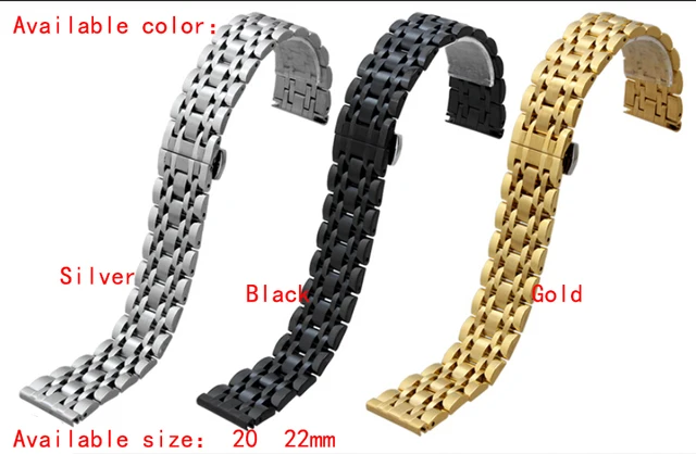 | [해외] 20 미리메터 22 미리메터 최고 등급 블랙 닦았 금속 스테인레스 스틸 손목 시계 밴드 스트랩 더블 푸시 걸쇠 버클 AR0389 AR0168 |