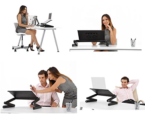 -. Feature : LIGHT WEIGHT, HIGH STRENGTH ALUMINUM TRAY, STURDY LEGS - Makes Carrying Easy and Holds Your Computer Firm and Steady. / FULLY ADJUSTABLE LEGS - Rotate 360 Degrees and Lock in Place at Various Angles. Quickly Collapse The Stand to Make it Portable. / MULTIPLE USES - Table Can Also Be Used For a TV Dinner Tray, Sound Equipment, Projector, Standing Desk, Book Tray, Writing Desk, and Tablet Holder. / SILENT USB POWERED CPU COOLING FANS - Connect USB Cord (Included) to Your Computer to Power The Quiet Cooling Fans. / "BEST OF ALL" We at WETNO believe in this product and we know YOU will too. After you try it out, if you don't love it, we'll give you 90 DAYS full refund with NO QUESTIONS ASKED. So order yours today!