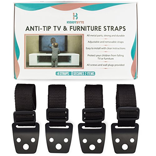 Anti Tip Furniture Kit & TV Safety Straps (4 Pack) - Adjustable Anchors 100% Metal Strap for Children Proof & Baby Proofing, Wall Anchor For Earthquake...