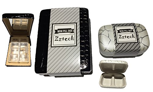 Fashion Designer Small Travel Pill Box set with Mirror and 2 Compartments...