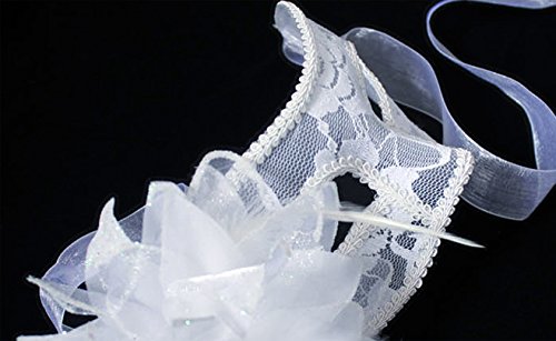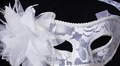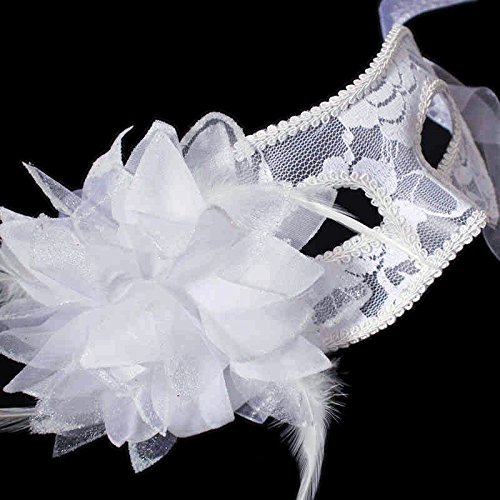 Nanier Luxury Mysterious Brocade Lace Crystals Mask Women's Venetian Pretty Masquerade Mask (White)