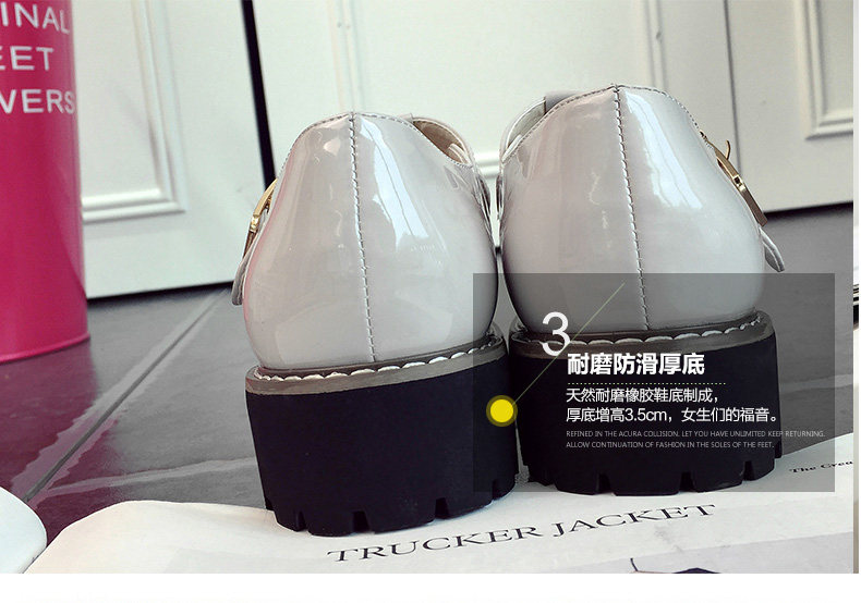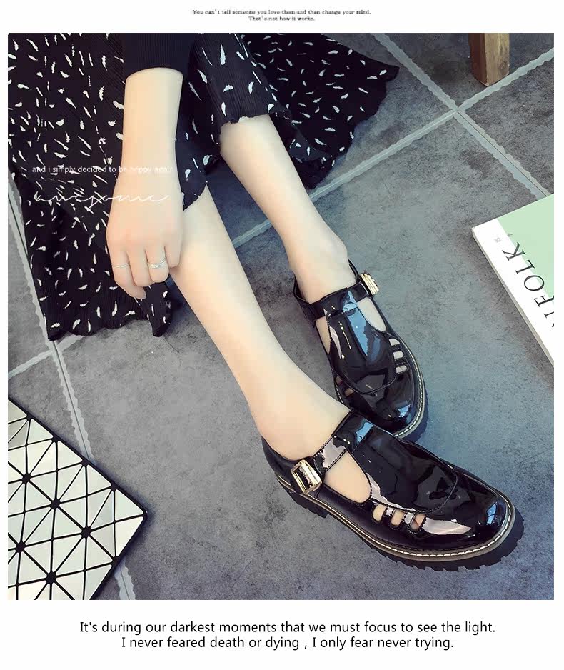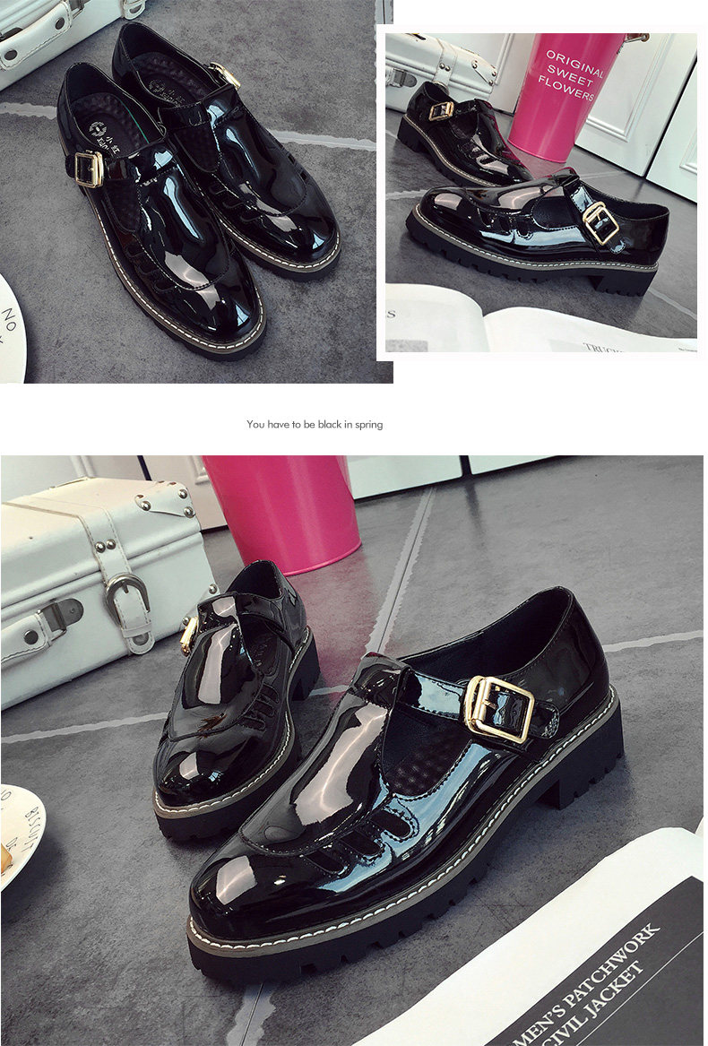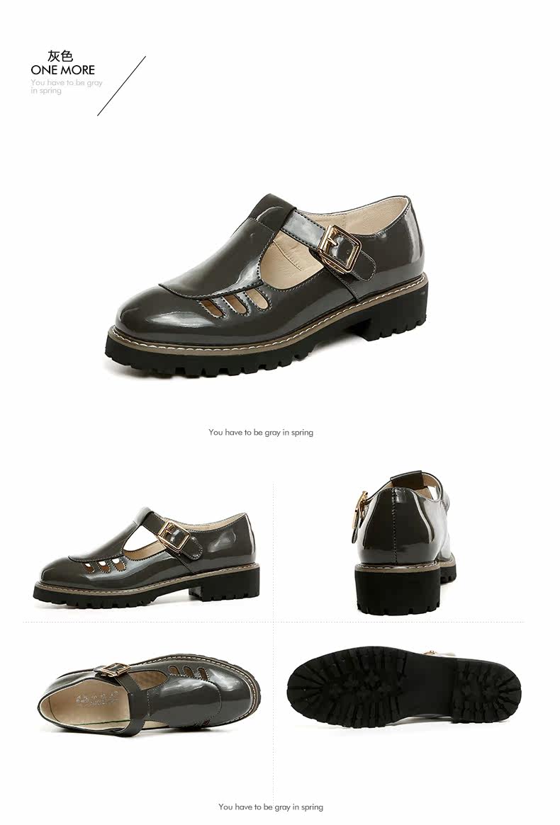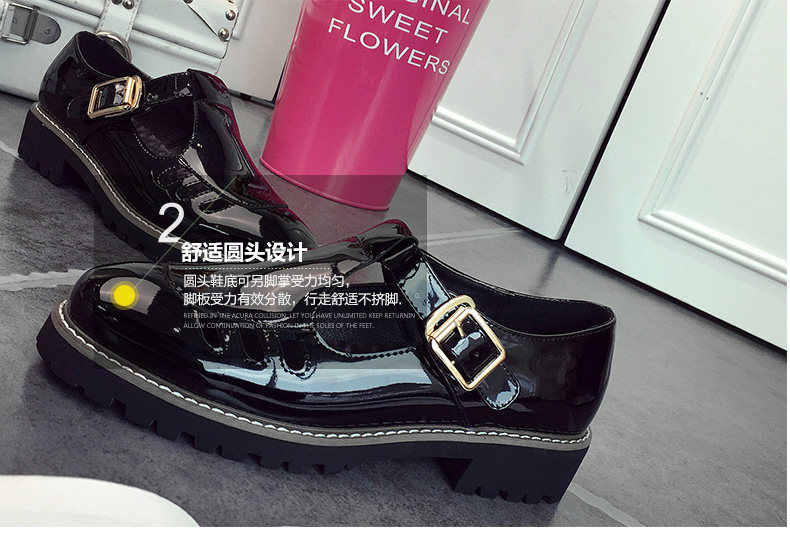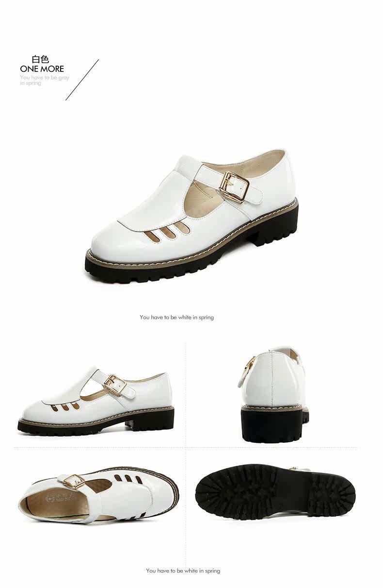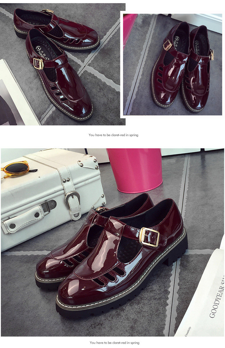 春季韩版漆皮单鞋女平底英伦搭扣玛丽珍鞋粗跟镂空休闲鞋女