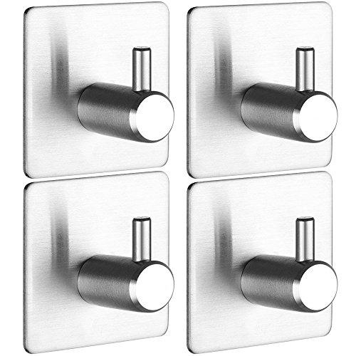 3M Self Adhesive Hooks, JINYEXUAN 4 Pack Heavy Duty Stainless Steel Bathroom Tower Hooks for Closets Coat Robe Hanger Rack Wall Mount