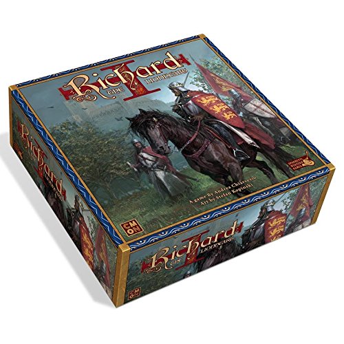 -. Binding : Toy -. Brand : CMON -. EAN : 0889696003652 -. Feature : For 2-6 players / 60 minute playing time / Two game boards with detailed figures / Influence the crusades. While the King is away, the Prince will play -. IsAdultProduct : 0 -. Label : Flat River Group -. Manufacturer : Flat River Group -. Model : RTL001 -. MPN : RTL001 -. NumberOfItems : 1 -. PackageQuantity : 1 -. PartNumber : RTL001 -. ProductGroup : Toy -. ProductTypeName : TOYS_AND_GAMES -. Publisher : Flat River Group -. ReleaseDate : 2017-11-17 -. Studio : Flat River Group -. Title : CMON Richard: the Lionheart Board Games -. UPC : 889696003652 -. Warranty : No Warranty