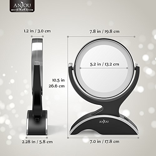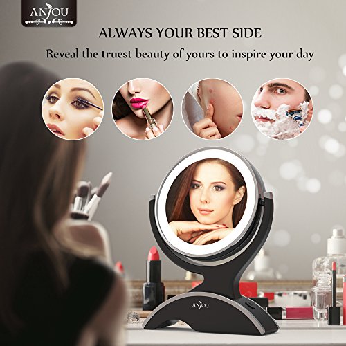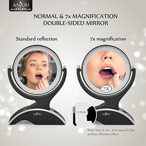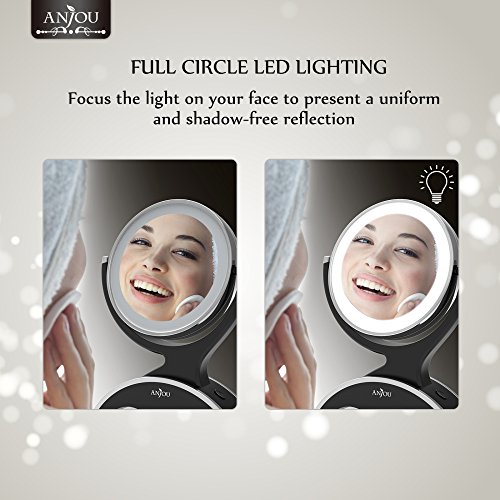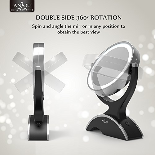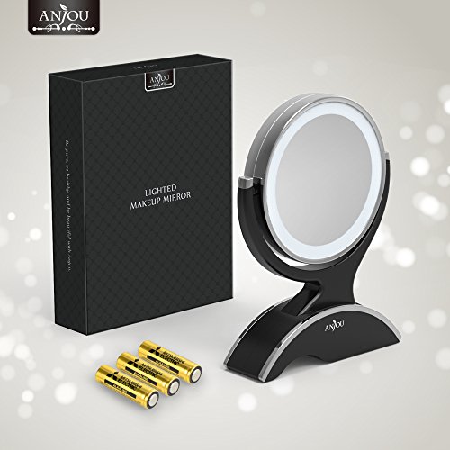 Anjou LED Lighted Makeup Mirror with 1x/7x Magnification, Double Side, 360° Rotation, Removable and Battery Powered with 3 Free Batteries