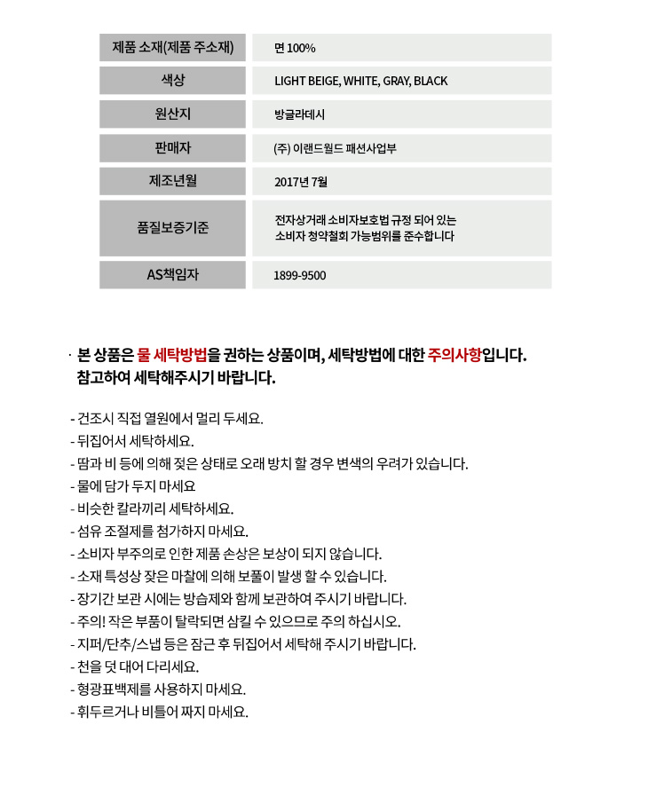 상품 실측 사이즈