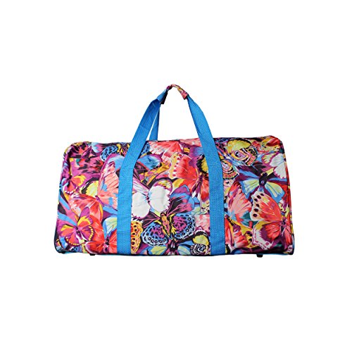 -. Binding : Apparel -. Brand : World Traveler -. Feature : 600D heavy duty polyester, lightweight body construction / Adjustable ergonomic shoulder strap / Front zipper pocket / Dimensions: 22" l x 10" w x 11" h - 1.3 Lb / 22x10x11 -. Label : World Traveler -. Manufacturer : World Traveler -. PackageQuantity : 1 -. ProductGroup : Apparel -. ProductTypeName : BAG -. Publisher : World Traveler -. Studio : World Traveler -. Title : World Traveler Value Series 22-Inch, Blue Butterfly Duffel Bag