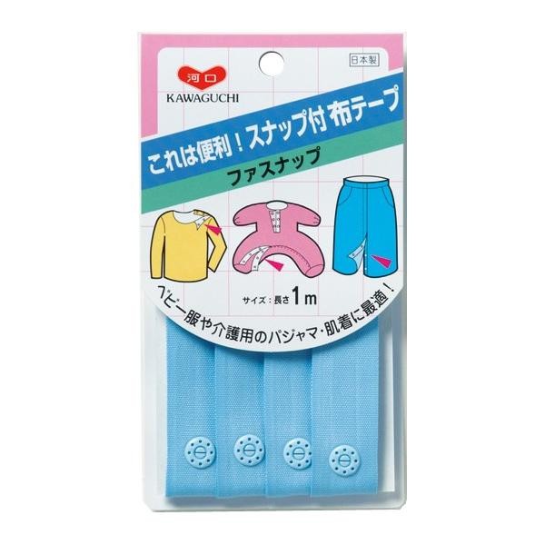 約5cm間隔でスナップがついているテープは、縫いつけるだけでファスナーやボタン代りに。ベビー服や介護用のパジャマに最適です。