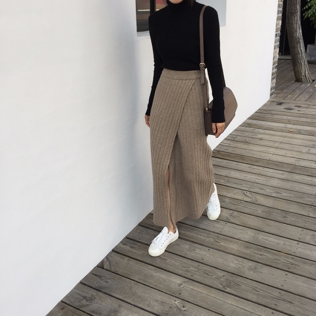 フロントのスリットがセクシーな季節感たっぷりのニットスカート♪