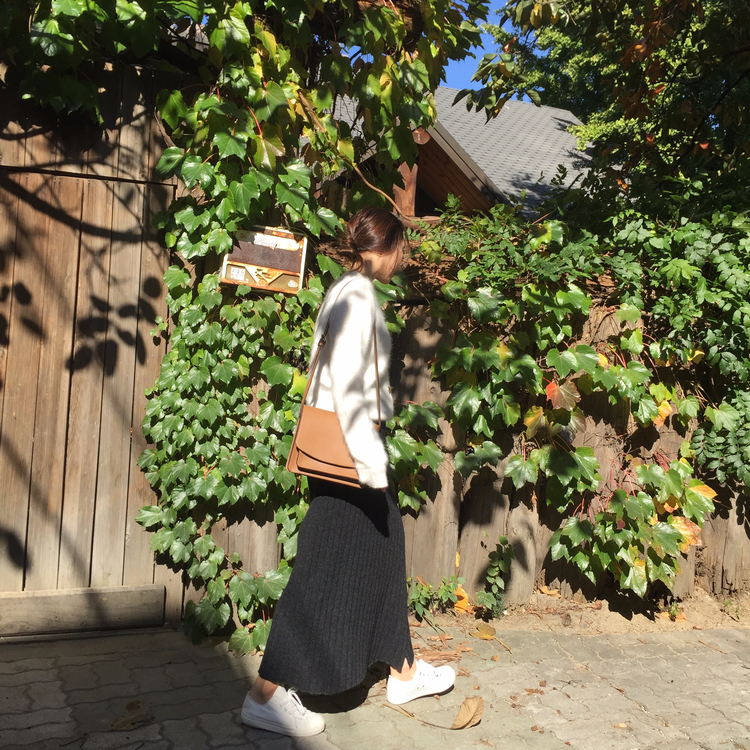 シンプルなニットと合わせて大人っぽくまとめると◎