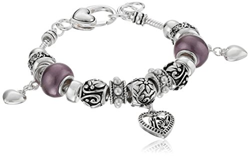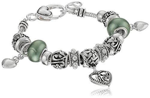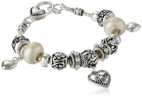 -. Title : Silver-Tone Beaded Mom Charm Bracelet