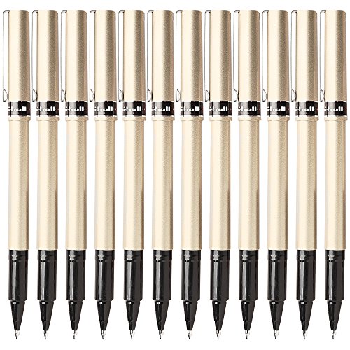 -. Title : uni-ball - Deluxe Roller Ball Stick Waterproof Pen, Black Ink, Fine - Dozen