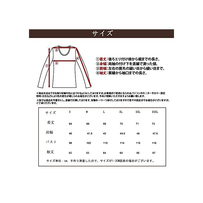사이즈(CM): 【사이즈:XS】 옷 길이 62 어깨 폭 38.5 바스트 94 소매 길이 61 【사이즈:S】 옷 길이 64 어깨 폭 40 바스트 98 소매 길이 62 【사이즈:M】 옷 길이 66 어깨 폭 41.5 바스트 102 소매 길이 63 【사이즈:L】 옷 길이 68 어깨 폭 43 바스트 106 소매 길이 64 【사이즈:XL】 옷 길이 70 어깨 폭 44.5 바스트 110 소매 길이 65 【사이즈:XXL】 옷 길이 72 어깨 폭 46 바스트 114 소매 길이 66 【사이즈:XXXL】 옷 길이 74 어깨 폭 47.5 바스트 118 소매 길이 67